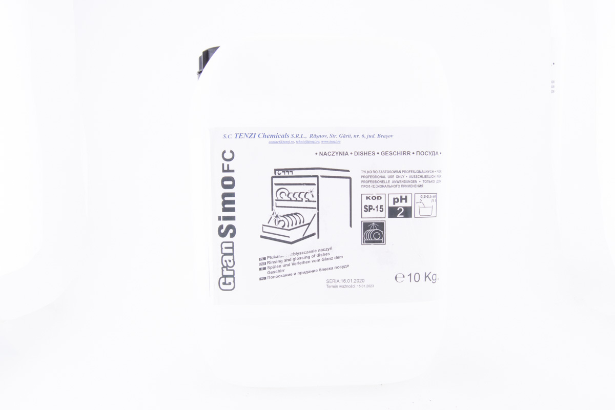 Instructiuni De Folosire: Concentraţia se calculează în funcţie de ciclul de lucru al maşinii de spălat vase, 0,01-0,05% (0,1 - 0,5 ml/ 1 l de apă) în medie pe ciclul de curăţare; depinde de duritatea apei; Se recomandă dozarea de Gran Simo FC corect, deoarece în cazul dozării prea ridicate de produs poate fi observată formarea spumei; iar la dozarea scăzută vor rămâne urme de picături de apă.